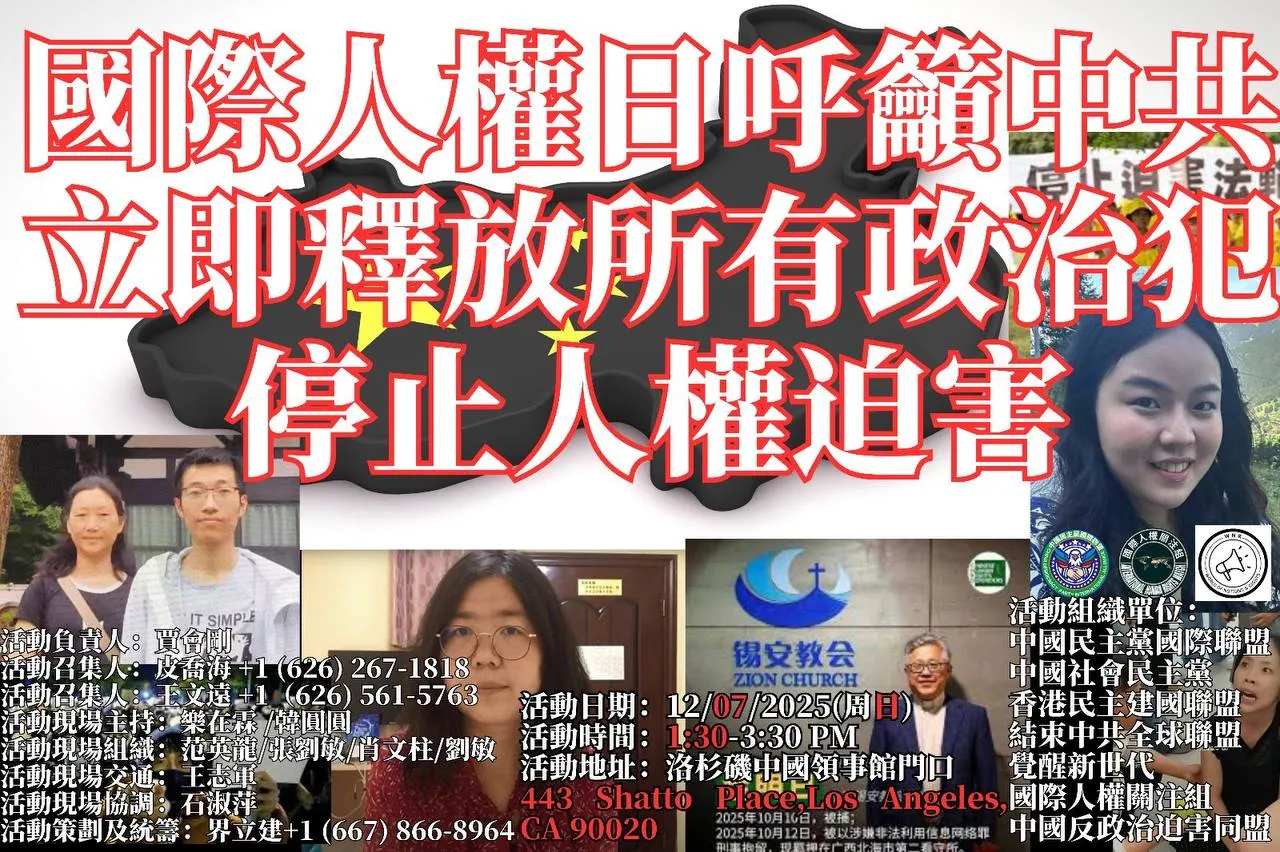 國際人權日吶喊:釋放所有中國良心犯! On Human Rights Day, demand CCP free all political prisoners. Stop tyranny, uphold human dignity.