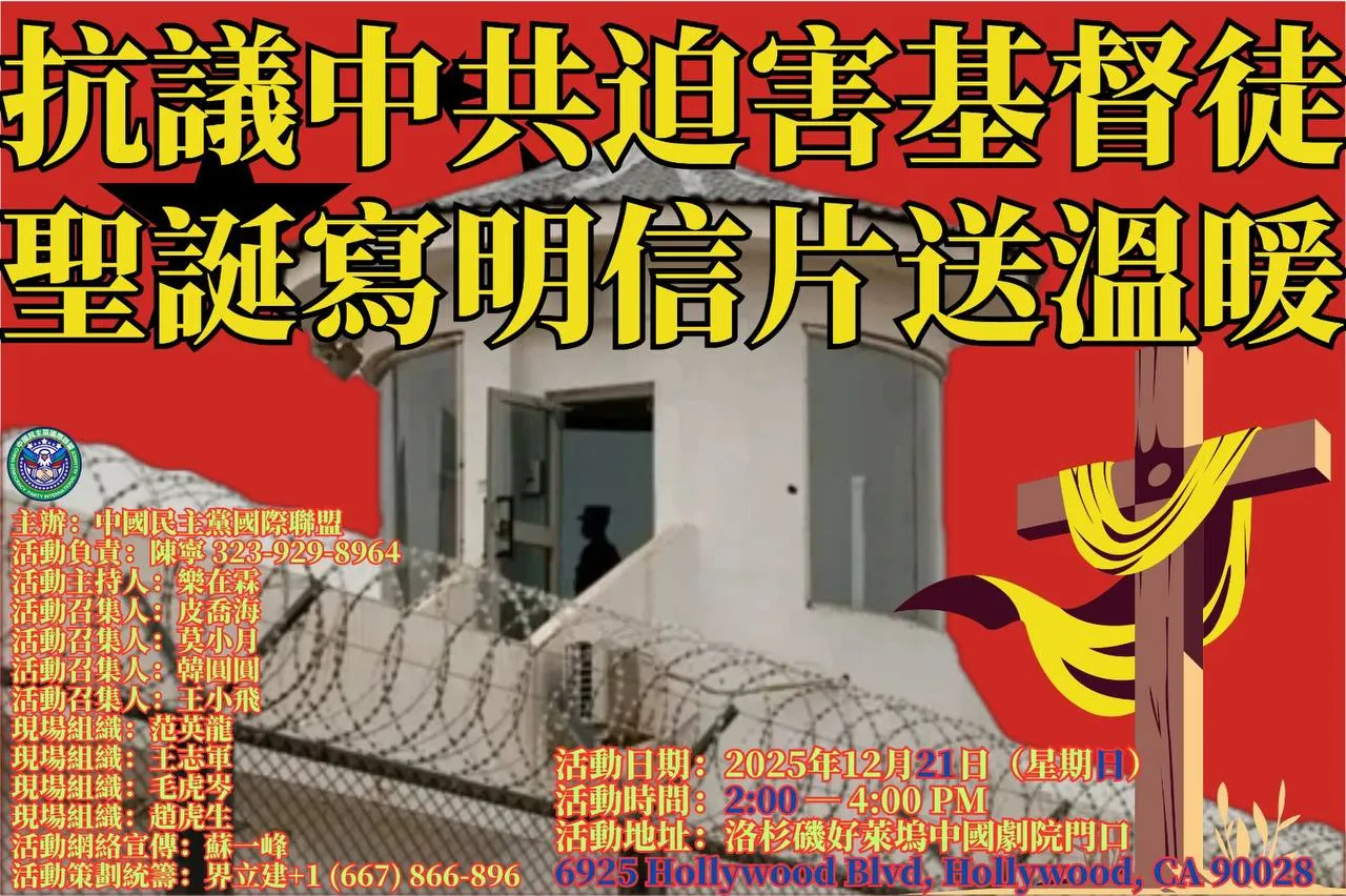 抗議中共迫害基督徒!聖誕節聲援受難信仰者,為良心犯寫明信片送關懷。 Protest CCP's brutal persecution of Christians. Send postcards of hope this Christmas.